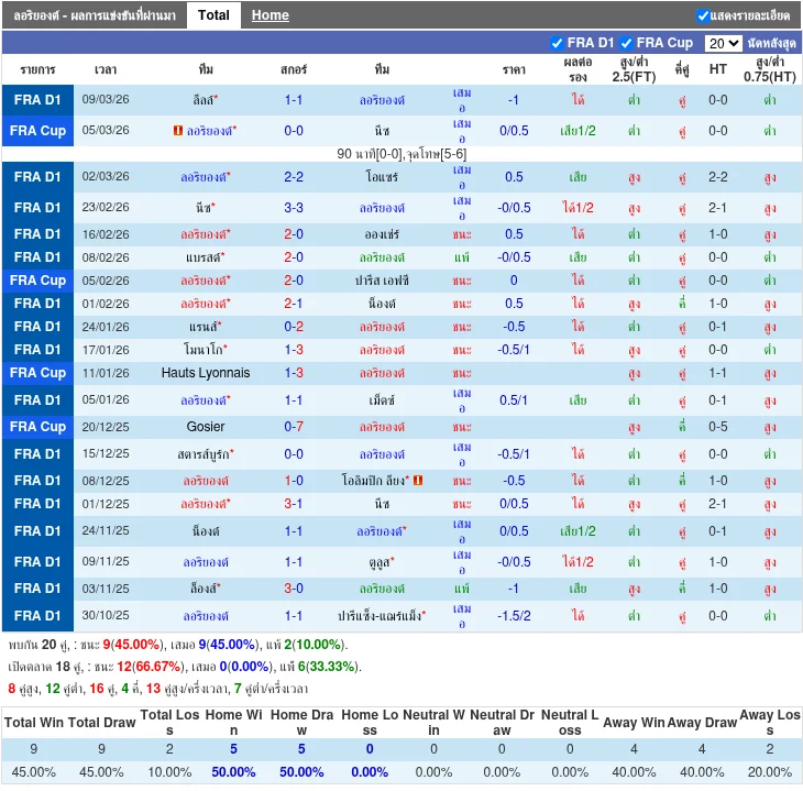 - 2026-03-08 | ลีก เอิง | ล็องส์ vs เม็ตซ์ | 3 - 0 | ล็องส์ ชนะ