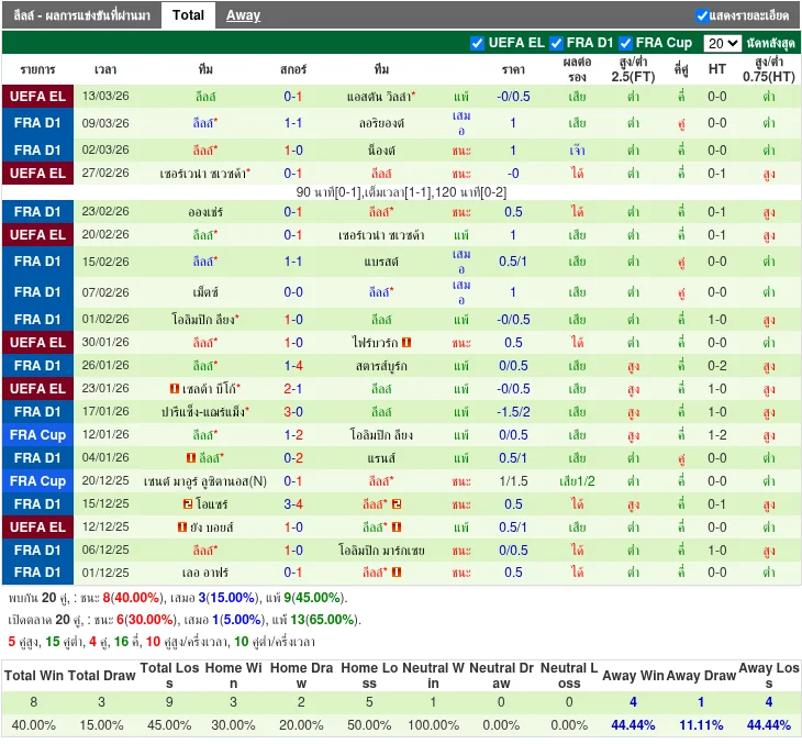 - 2026-03-08 | ลีก เอิง | ลีลล์ vs โลริย็อง | 1 - 1 | เสมอ