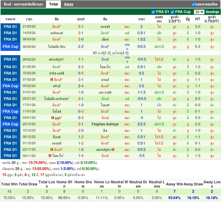 - 2026-03-08 | Ligue 1 | Lens vs Metz | 3 - 0 | Lens ชนะ