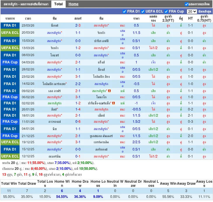 - 2026-03-22 | Ligue 1 | น็องต์ - สตราสบูร์ก | 2 - 3 | สตราสบูร์ก ชนะ