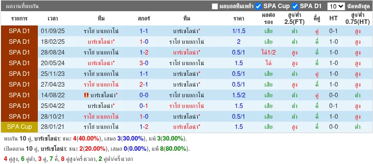 - 2024-08-27 | La Liga | รายโayo บาเยกาโน่ vs บาร์เซโลน่า | 1 - 2 | ชนะ