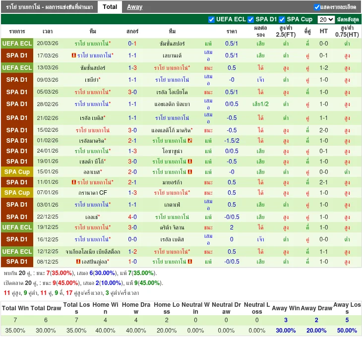 - 2026-03-16 | La Liga | รายโayo บาเยกาโน่ vs เลบันเต้ | 1 - 1 | เสมอ