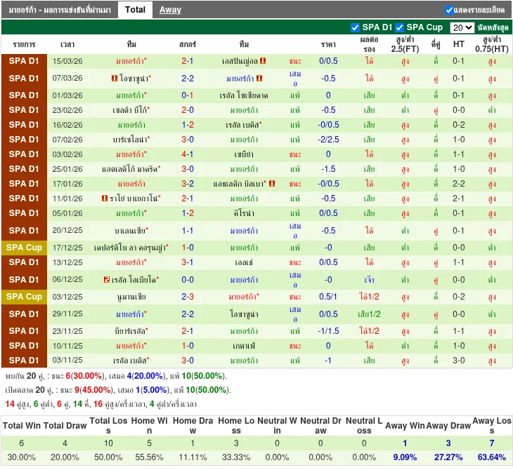 - 2026-03-15 | ลา ลีกา | มายอร์ก้า vs เอสปันญ่อล | 2 - 1 | มายอร์ก้า ชนะ