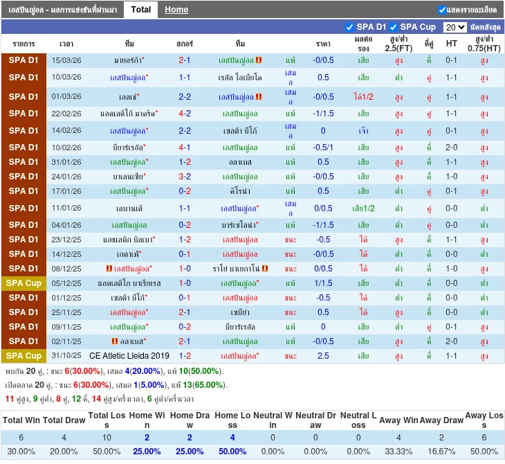 ฟอร์มทีมเหย้า: เอสปันญ่อล