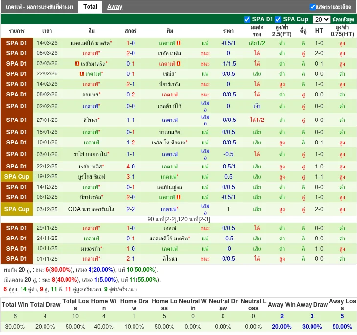 ฟอร์มทีมเยือน: เกตาเฟ่