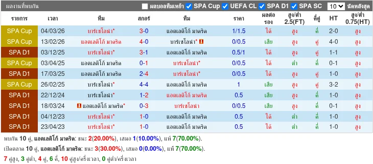 - 2025-04-02 | แอตเลติโก มาดริด vs บาร์เซโลน่า | 0-1 | บาร์เซโลน่า