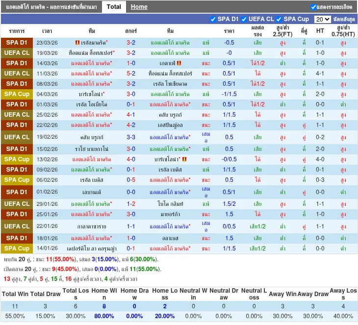 - 2026-03-07 | La Liga | แอตเลติโก มาดริด vs เรอัล โซเซียดัด | 3-2 | แอตเลติโก มาดริด ชนะ