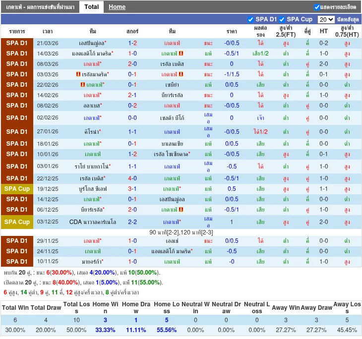 ฟอร์มทีมเหย้า: เกตาเฟ่