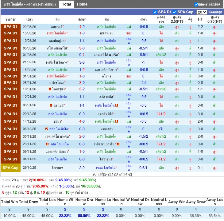 - 2026-03-09T20:00:00+00:00 | La Liga | เอสปันญ่อล vs โอเวียโด | 1-1 | เสมอ