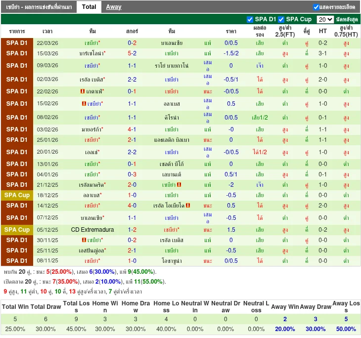 ฟอร์มทีมเยือน: เซบีย่า