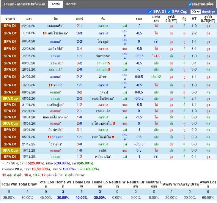 วิเคราะห์บอล ลาลีกา สเปน ระหว่าง อลาเบส vs มายอร์ก้า [25/04/2026]