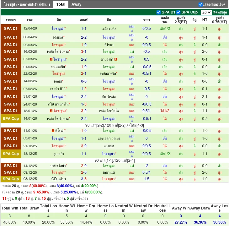 ฟอร์มทีมเยือน: โอซาซูน่า
