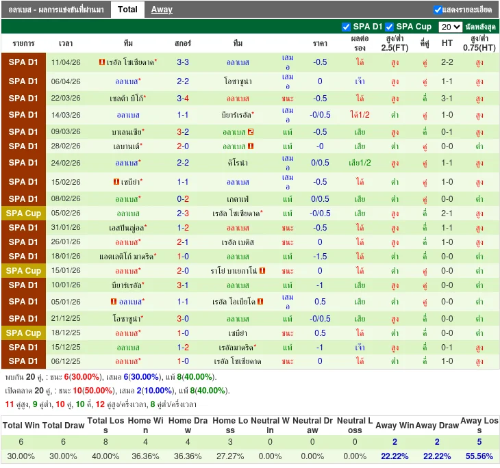 - 2026-04-05T19:00:00+00:00 | ลา ลีกา | อลาเวส vs ออสซาซูน่า | 2 - 2 | เสมอ