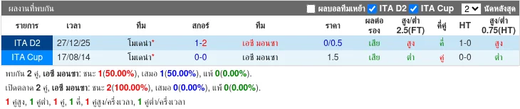 - 2025-12-26 | Serie B | โมเดนา vs มอนซา | 1 - 2 | มอนซ่า ชนะ