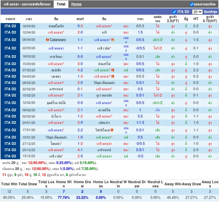 - 2026-03-21 | Serie B | มอนซ่า vs เวเนเซีย | 1 - 1 | เสมอ