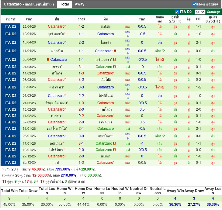 - 2026-04-25 | Serie B | Catanzaro vs Spezia | 4 - 2 | Catanzaro ชนะ