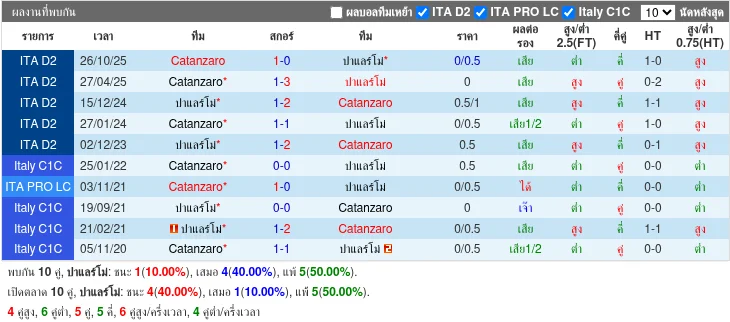 - 2025-10-25 | Serie B | Catanzaro vs Palermo | 1 - 0 | Catanzaro ชนะ