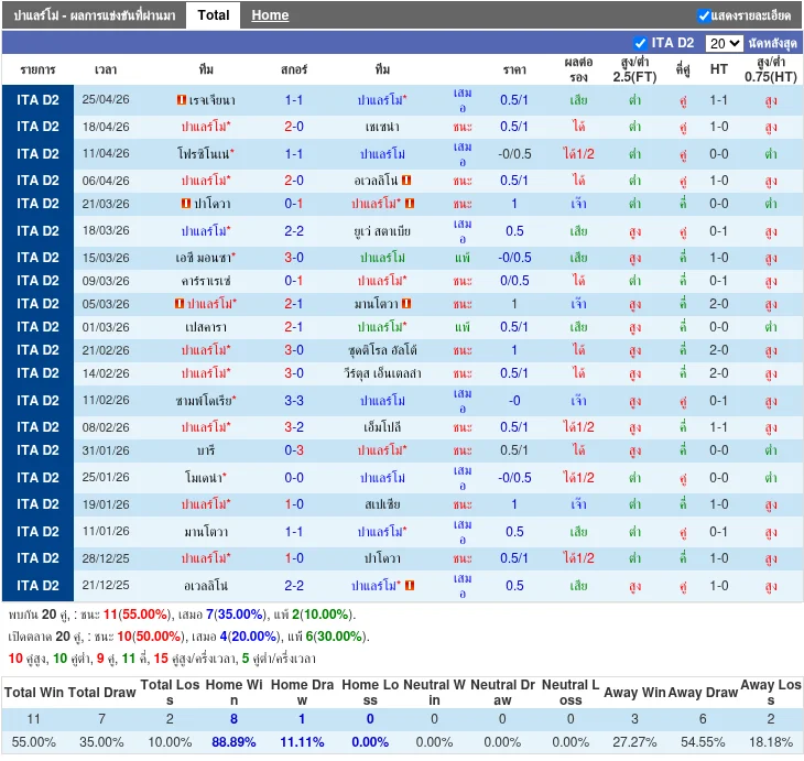 - 2026-03-21 | Serie B | Padova vs Palermo | 0 - 1 | Palermo ชนะ
