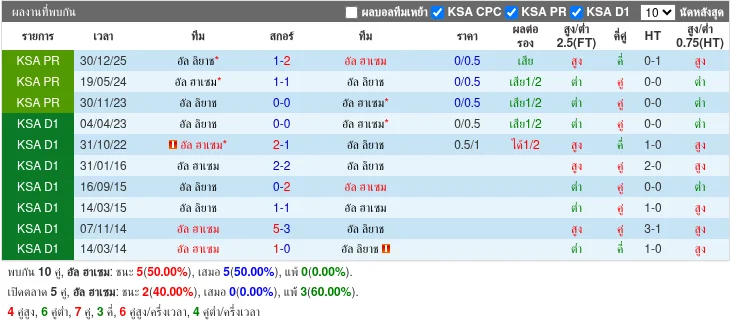 สถิติ H2H ล่าสุด