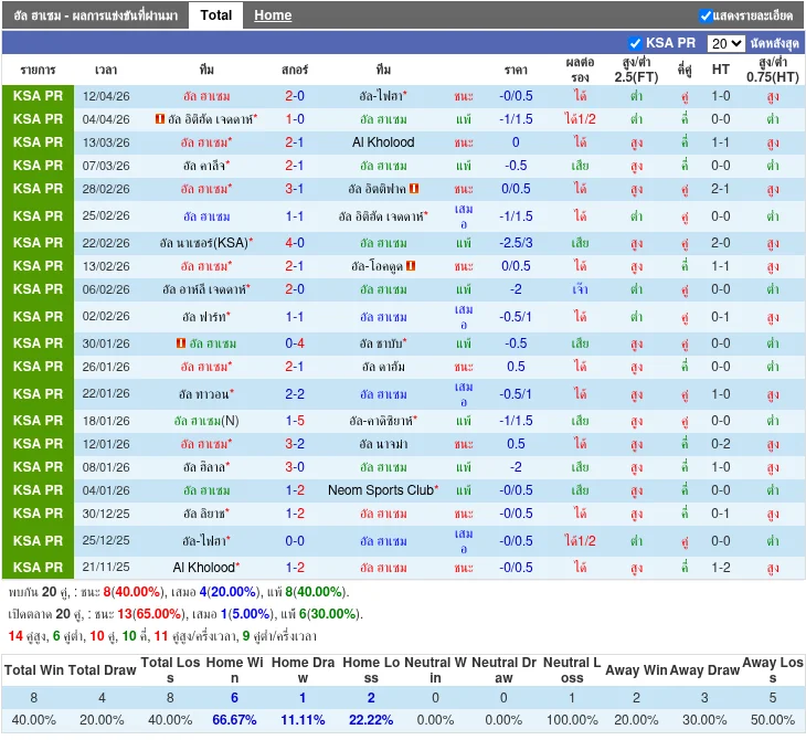 วิเคราะห์บอล ซาอุดิ โปรเฟสชั่นแนล ลีก ระหว่าง อัล ฮาเซม vs อัล ลิยาช [24/04/2026]