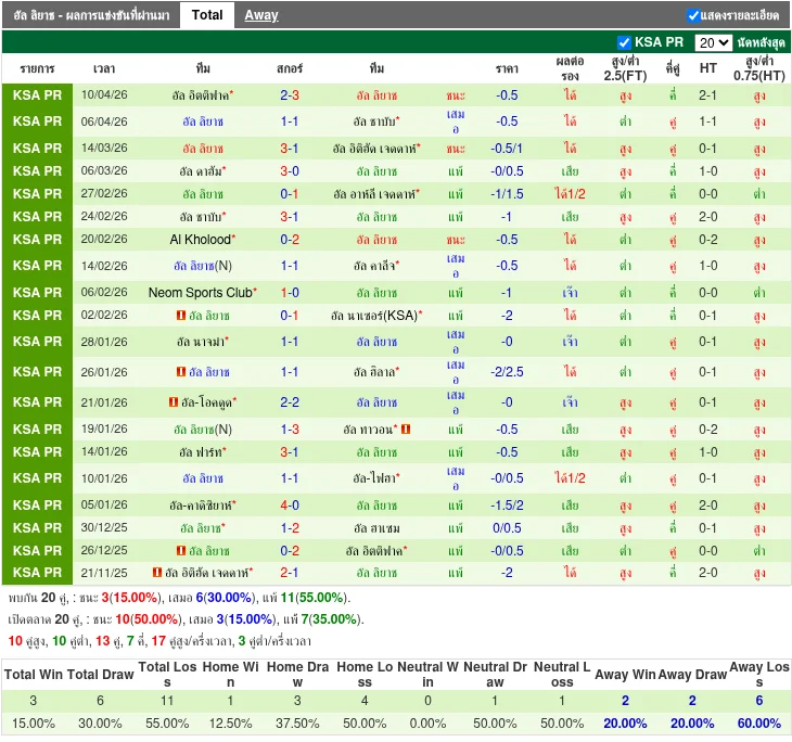 ฟอร์มทีมเยือน: อัล ลิยาช