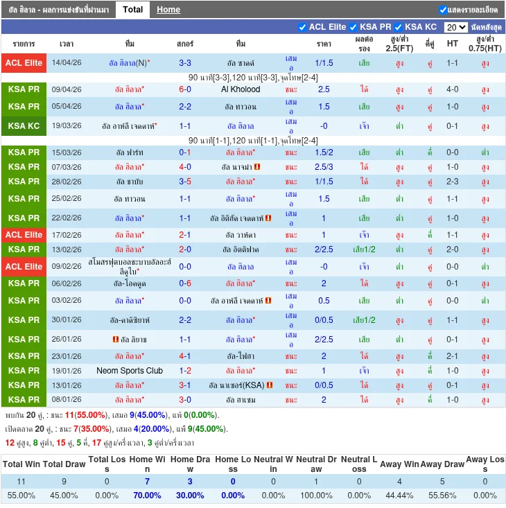 - 2026-03-14T19:00:00+00:00 | Pro League | อัล ฟาเทห์ vs อัล ฮิลาล ซาอุดี เอฟซี | 0-1 | ชนะ