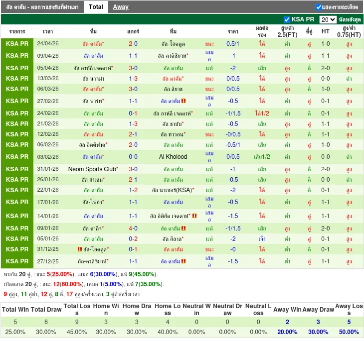 ฟอร์มทีมเยือน: อัล ดาฮัม