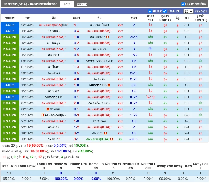 ฟอร์มทีมเหย้า: อัล นาเซอร์(KSA)