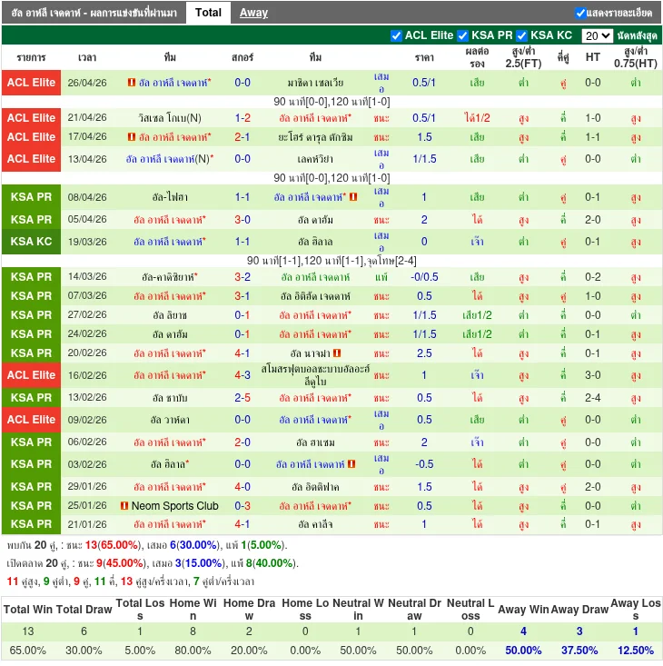 ฟอร์มทีมเยือน: อัล อาห์ลี เจดดาห์