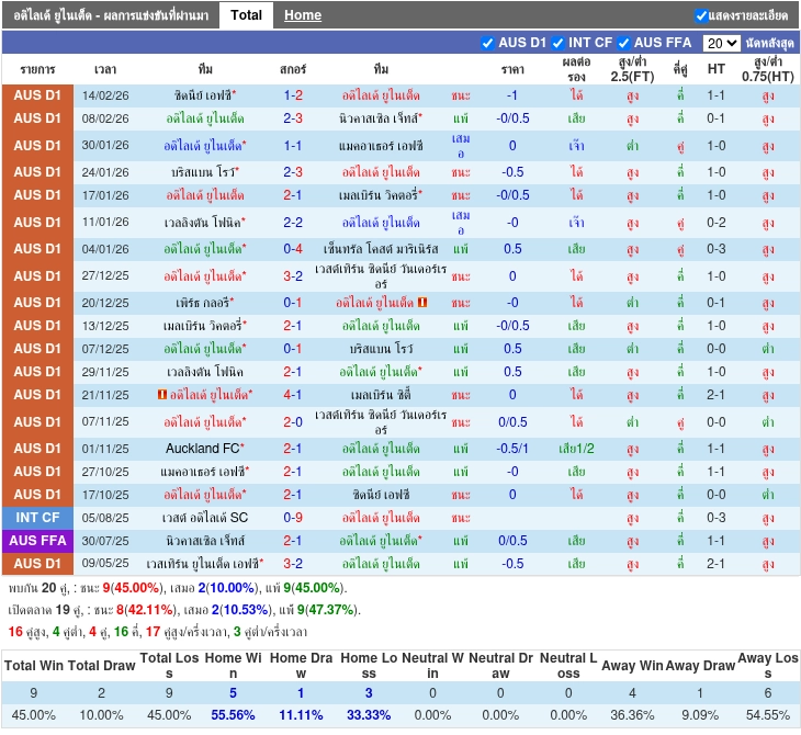 วิเคราะห์บอล ออสเตรเลีย เอ-ลีก ระหว่าง อดิไลเด้ ยูไนเต็ด vs เพิร์ท กลอรี่ [20/02/2026]