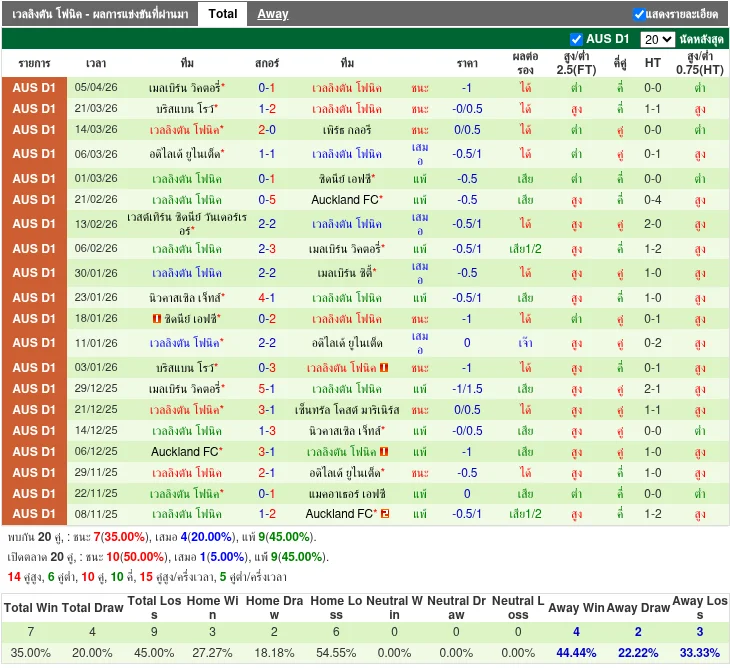 - 2026-03-14 | A-League | Wellington Phoenix vs Perth Glory | 2 - 0 | ชนะ