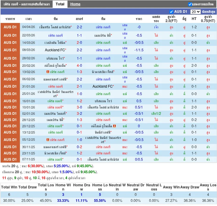 - 2026-03-22 | A-League | Perth Glory vs Melbourne City | 1-1 | เสมอ