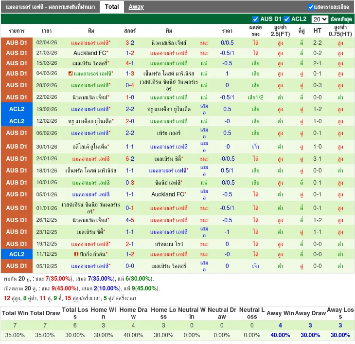 - 2026-03-21 | A-League | Auckland vs Macarthur | 1-2 | Macarthur ชนะ