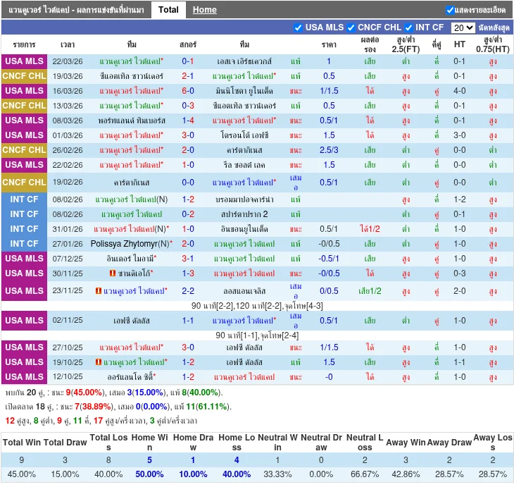 - 2026-03-15T20:30:00+00:00 | Major League Soccer | Vancouver Whitecaps vs Minnesota United FC | 6 - 0 | Vancouver Whitecaps ชนะ