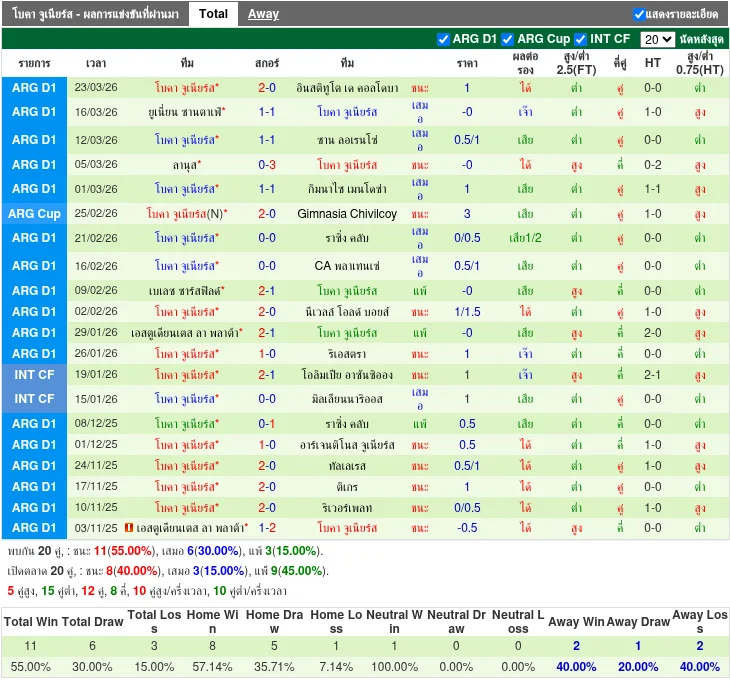 - 2026-03-22 | Liga Profesional Argentina | Boca Juniors vs Instituto Cordoba | 2 - 0 | Boca Juniors ชนะ
