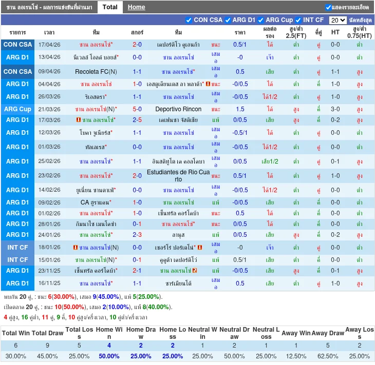 - 2026-03-25T22:00:00+00:00 | Liga Profesional Argentina | Deportivo Riestra vs San Lorenzo | 1-1 | เสมอ