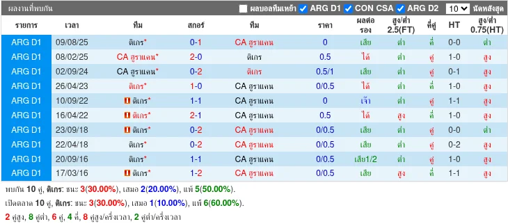 สถิติ H2H ล่าสุด
