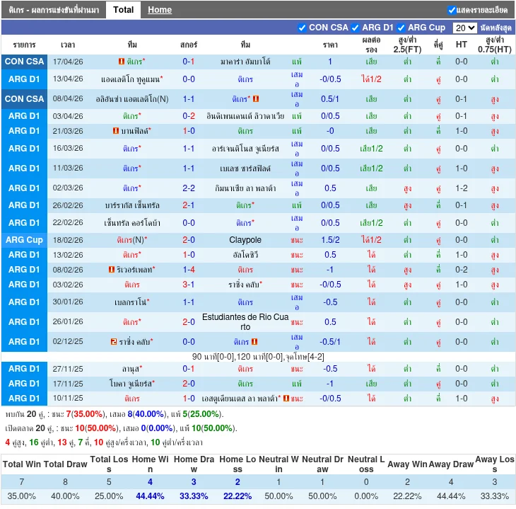- 2026-04-02T20:30:00+00:00 | Liga Profesional Argentina | Tigre vs Independ. Rivadavia | 0-2 | Independ. Rivadavia ชนะ