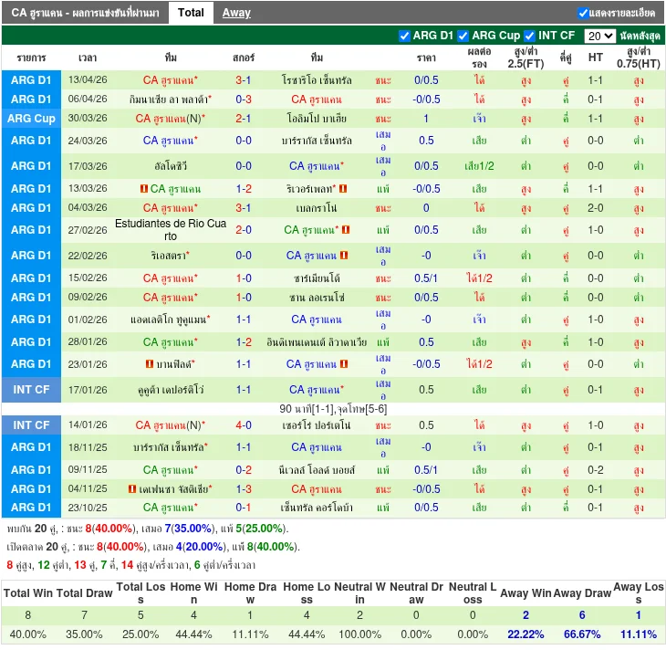 ฟอร์มทีมเยือน: CA ฮูราแคน