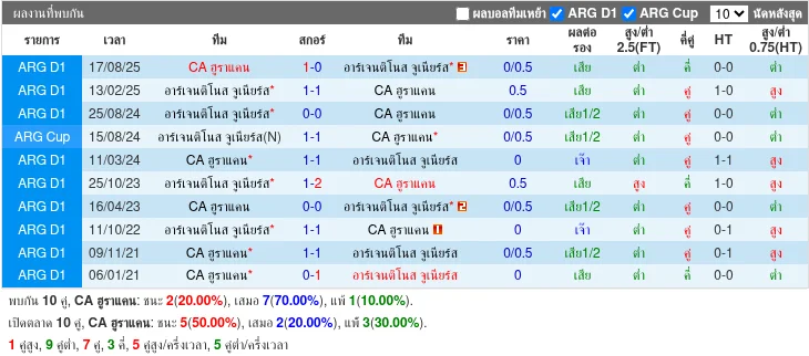เกมนี้น่าจะเป็นการเผชิญหน้าที่สูสีระหว่างทีมที่มีฟอร์มไม่ร้อนแรงทุกนัดแต่ยังมีจุดเด่นในการรุกที่น่ากลัว ฮูราแคนมีแนวรุกที่เค้นความเฉียบคมจากเกมรุกทางด้านริมสนามและมีผลงานที่ดีในบ้านในช่วงหลัง ด้วยชัยชนะจาก 2 นัดล่าสุดที่เปิดบ้านถล่มคู่แข่งอย่าง Rosario Central (3-1) และ Olimpo (2-1) ขณะเดียวกันเสมอ 2 นัดและแพ้ 1 นัดใน 5 เกมเหย้าล่าสุดสะท้อนถึงความมั่นคงที่ไม่สม่ำเสมอ ขณะที่อาร์เจนติโนส จูเนียร์ส มีความเร็วและการบุกที่อันตรายในหลายจังหวะ โดยมีผลนอกบ้านที่แข็งแกร่งในบางนัด เช่น ชนะ 1-0 ที่ Tucuman และ 2-1 ที่ Lanus แต่ก็มีเกมที่พลาดท่าไปบ้าง เช่น แพ้ที่ Independiente Rivadavia 1-3 สถานการณ์ H2H ที่พบกัน 5 ครั้งก่อนหน้าได้แสดงให้เห็นถึงความสม่ำเสมอของทั้งสองทีมในการเสมอหรือชนะเล็กน้อย ซึ่งทำให้เกมนี้มีโอกาสสูงที่จะจบแบบมุมมองกลางๆ ด้วยการต่อสู้อย่างดุดันในแดนกลางและโอกาสทำประตูไม่มาก ความมั่นใจอยู่ที่การรุกของฮูราแคนจากการได้เปรียบเล่นในบ้านและความแม่นยำของอาร์เจนติโนส จูเนียร์สในการทำเกมรุกเร็ว