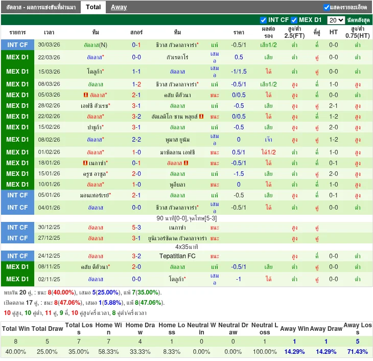 ฟอร์มทีมเยือน: อัตลาส