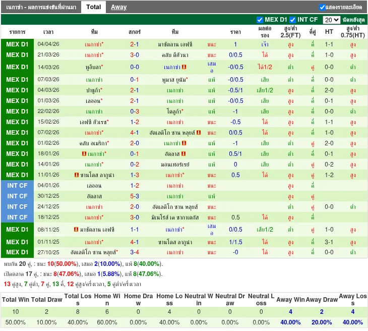 - 2026-03-21 | Liga MX | Atlas vs Club Queretaro | 0 - 0 | เสมอ