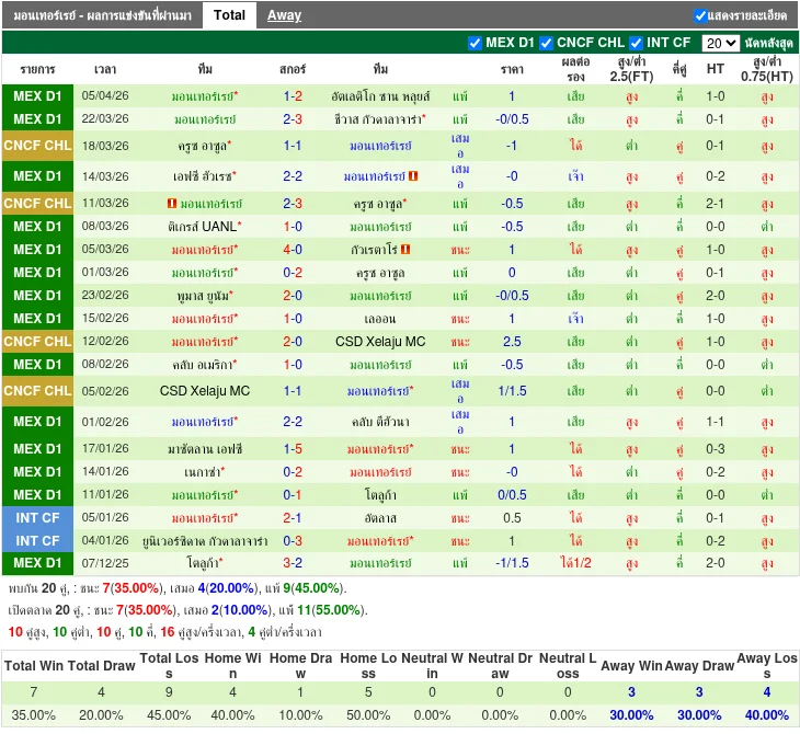 - 2026-04-04 | Liga MX | มอนเทร์เรย์ vs แอตลาส ซาน ลุยส์ | 1-2 | แอตเลติโก ซาน ลุยส์ ชนะ