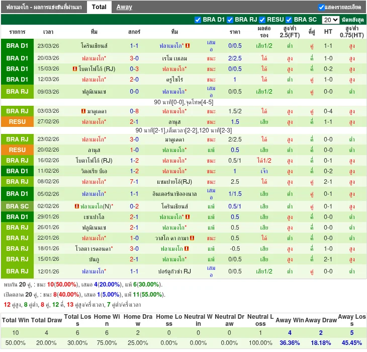 ฟอร์มทีมเยือน: ฟลาเมงโก