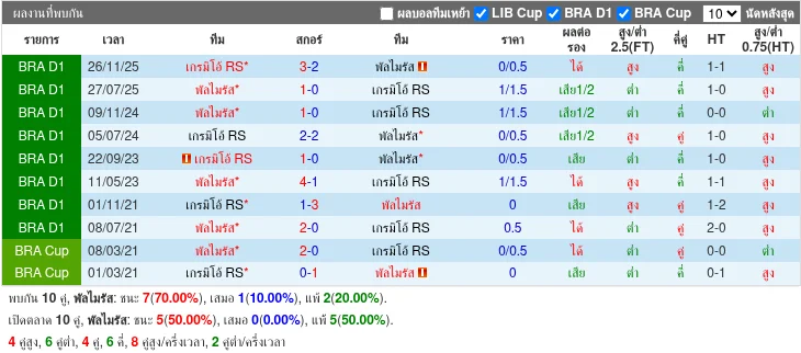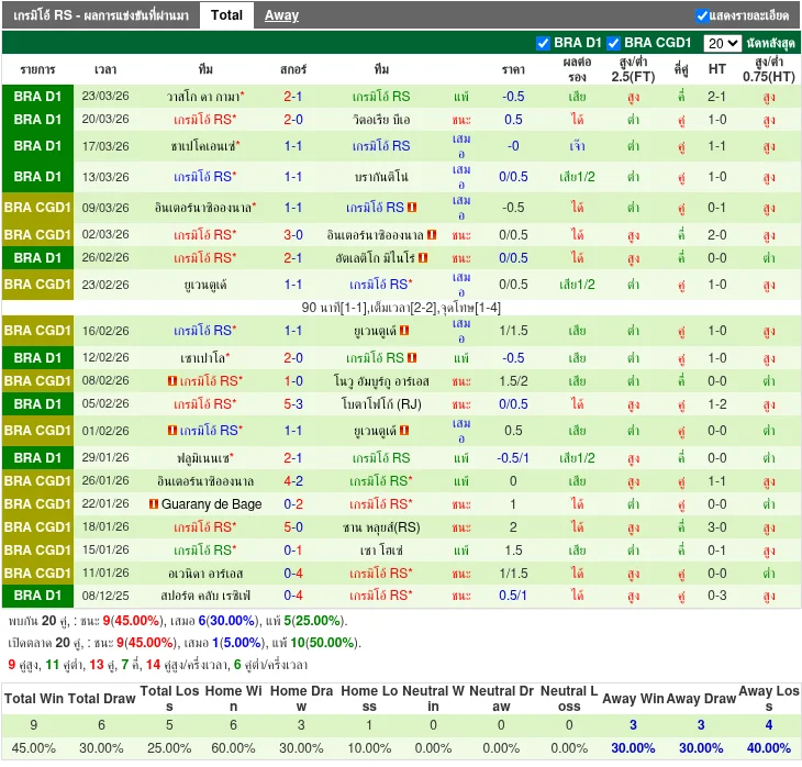 ฟอร์มทีมเยือน: เกรมิโอ้ RS