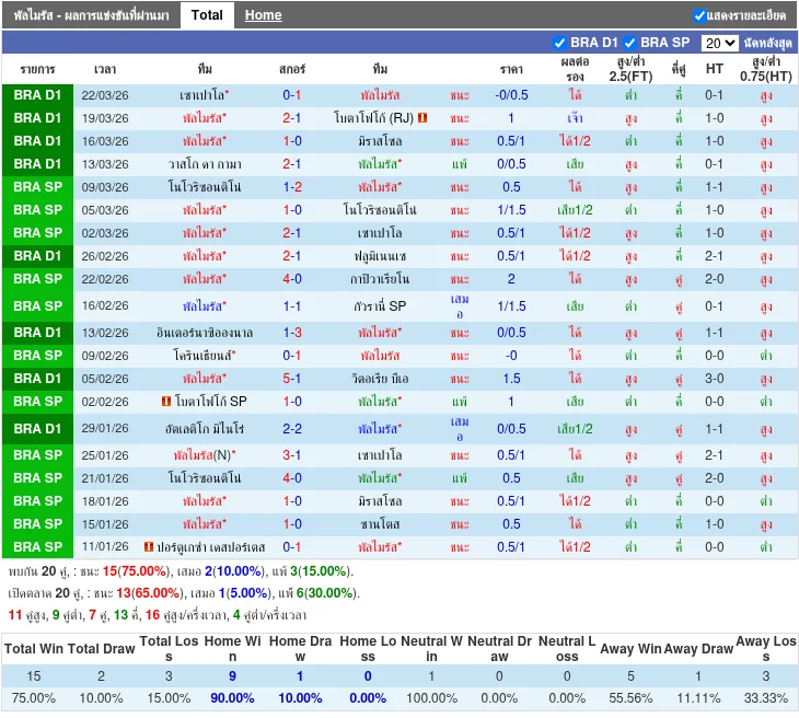 ฟอร์มเหย้า 5 นัดล่าสุด: ชนะ 4 แพ้ 1