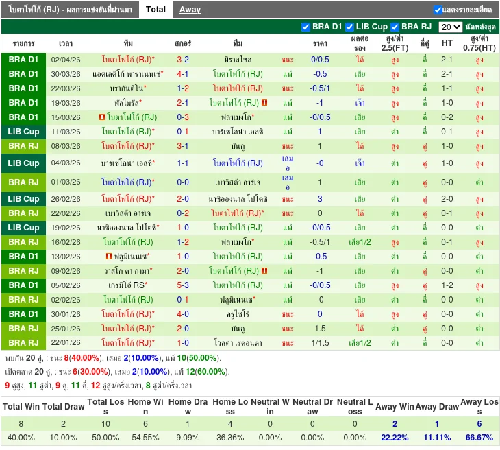 ฟอร์มทีมเยือน: โบตาโฟโก้ (RJ)