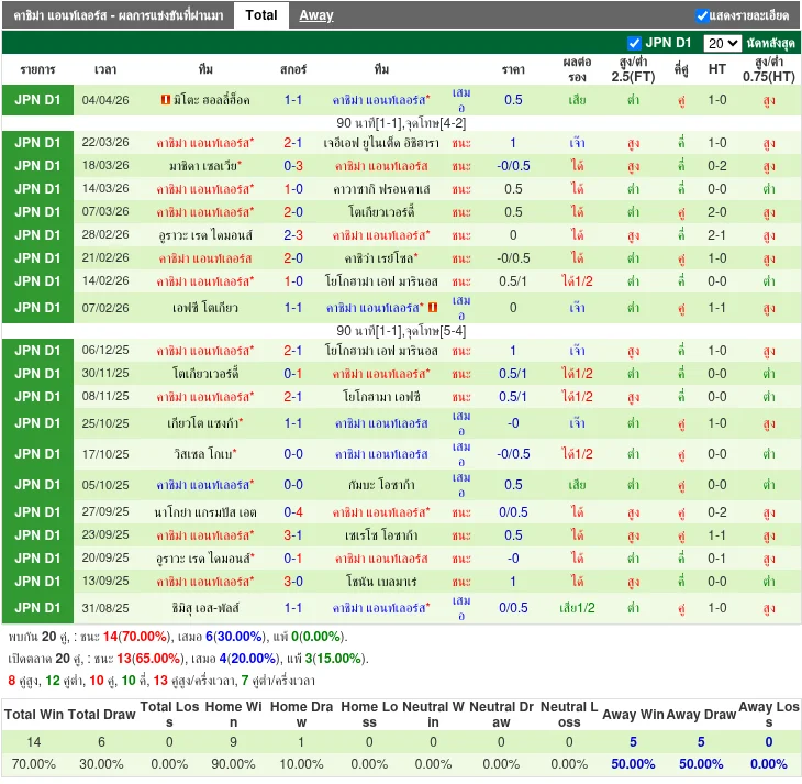 ฟอร์มทีมเยือน: คาชิม่า แอนท์เลอร์ส