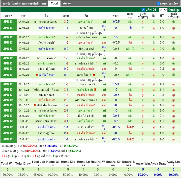 วิเคราะห์บอล เจลีก ดิวิชัน 1 ระหว่าง กัมบะ โอซาก้า vs เซเรโซ โอซาก้า [11/04/2026]