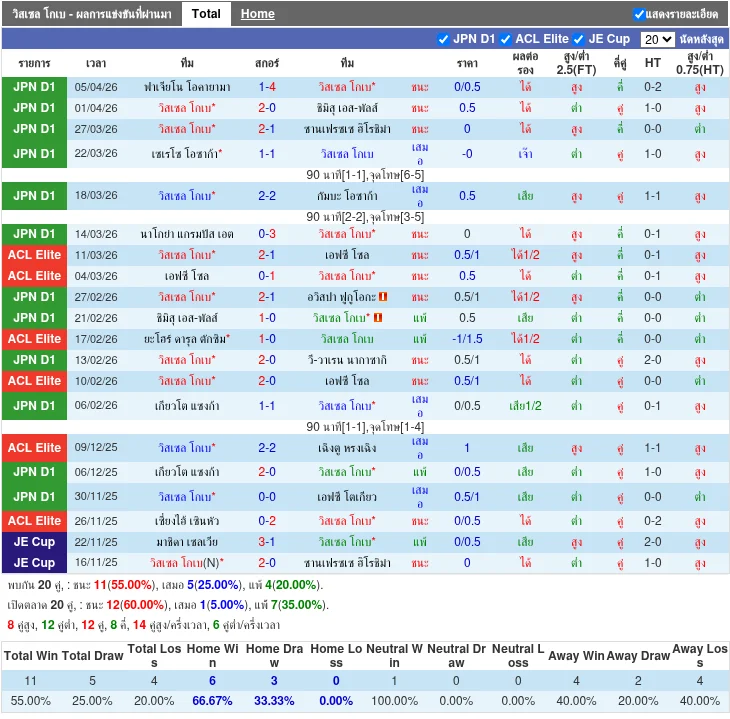 วิเคราะห์บอล เจลีก ดิวิชัน 1 ระหว่าง วิสเซล โกเบ vs นาโกย่า แกรมปัส เอต [11/04/2026]